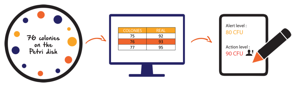 This is the question we heard many times during customers visits. In fact, there is a difference between colony count and the real number of colonies growing on the agar. It is simple : the wider the diameter of the holes, the more probability to collect several bacteria and impact them at the same place.