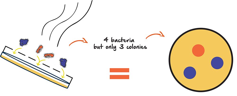 Example : 2 bacteria collected through the same whole will not grow in 2 colonies, but only in 1 !
