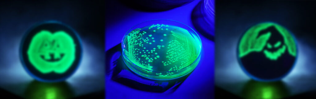 C’est pourquoi la règlementation américaine (USDA et FDA), recommande l’utilisation de souches de contrôle avec des marqueurs de protéine fluorescente verte (GFP) afin de distinguer clairement les témoins de la véritable contamination. En effet, ces souches sont fluorescentes sous la lumière UV ce qui permet d’éliminer toute incertitude quant à leur origine.