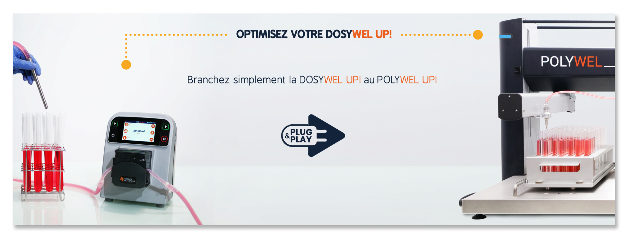 Vous disposez déjà d’une DOSYWEL UP! et vos cadences augmentent au laboratoire ? Boostez votre capacité de production en connectant simplement votre pompe péristaltique au POLYWEL UP!