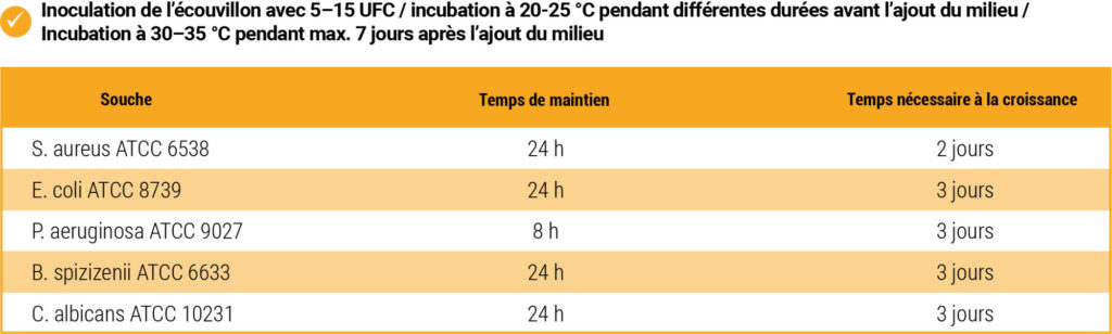 Les données de stabilité indiquent que, pour différentes souches, la survie sur le tampon de l’écouvillon est assurée jusqu’à 24 h avant mise en culture, tout en permettant ensuite une croissance nette après incubation.