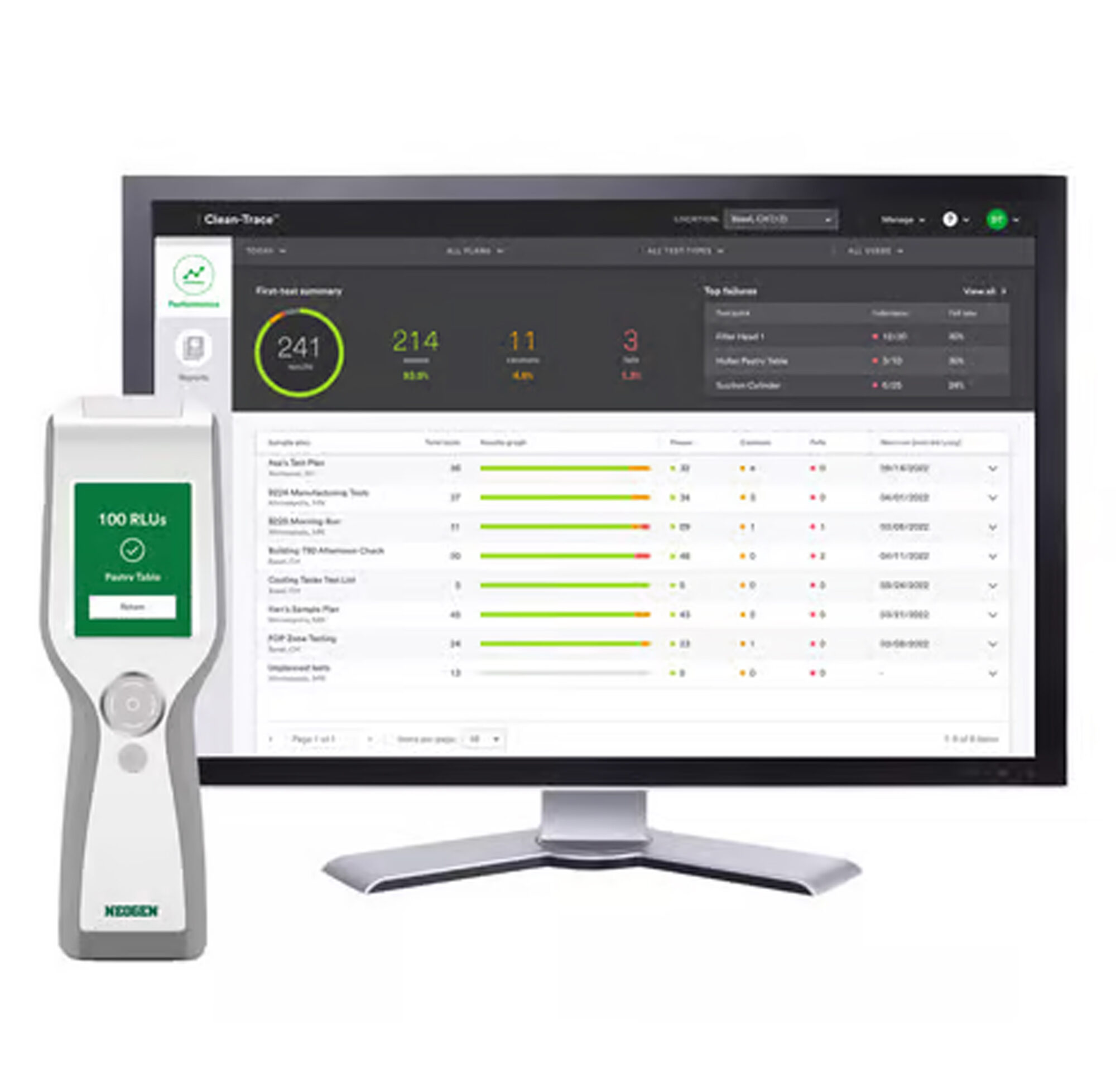Le logiciel Clean-Trace transforme les données brutes en informations claires. Son tableau de bord permet de générer, stocker et analyser les résultats de manière fluide, facilitant la détection rapide de zones à risque et l’identification des tendances. Adapté aux environnements multi-sites, il automatise les rapports et permet une visualisation optimisée, aidant les laboratoires à prendre des décisions rapides. Clean-Trace n’est pas seulement un outil de contrôle : c’est un véritable levier de prévention et d'amélioration continue.