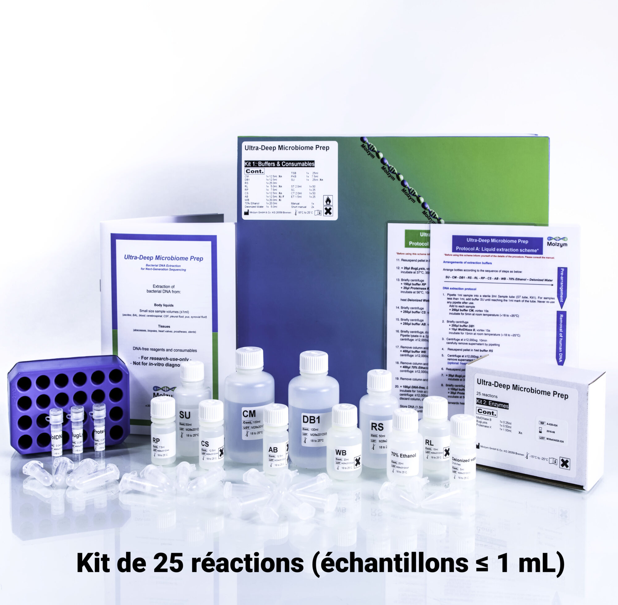Kit pour la suppression de l’ADN de l’hôte et enrichissement et l’isolement de l’ADN bactérien et fongique pour les échantillons liquides, écouvillons et tissus ⩽ 1 mL.